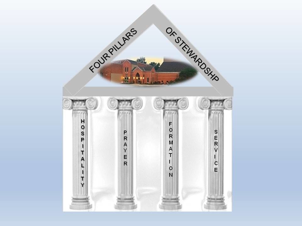 St. Regis Ministries all fit in the categories of the 4 Pillars of Stewardship: Hospitality, Prayer, Formation and Service. Through these Pillars, parishioners are invited to experience, witness and live as good stewards in response to their baptismal call to discipleship. By making our parish a place of Hospitality, Prayer, Formation and Service, many opportunities are provided for parishioners to pray, participate and give while utilizing their God given time, talent and treasure.